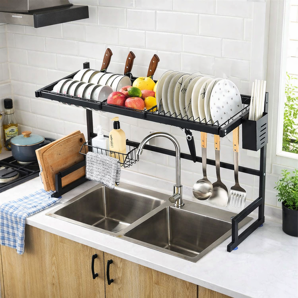 Este escurridor de loza te ayuda a organizar más platos en menos espacio, mientras el agua escurre correctamente, ahorrándote tiempo y evitando que tengas que limpiar el mesón después de lavar. Tu cocina se mantiene limpia, seca y ordenada sin esfuerzo.